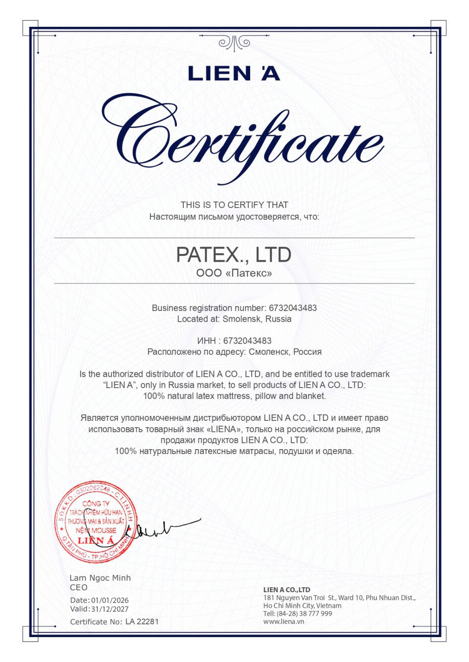 Декларации Соответствия на 100% натуральный латекс (Подушки, матрасы, детские товары) из Вьетнама, можно проверить на Государственном сайте РосАккредитации - www.fsa.gov.ru , перейдя по ссылке: